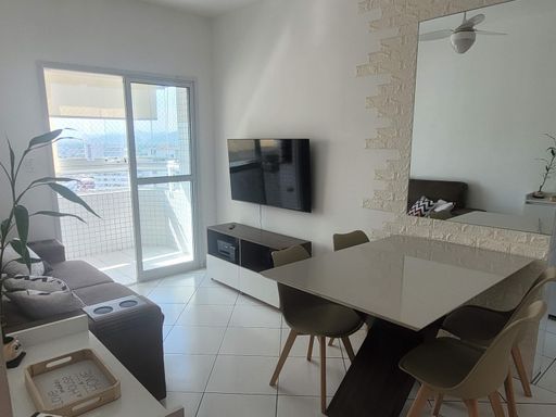 PRAIA GRANDE - GUILHERMINA. Olá! Tenho uma excelente oportunidade de apartamento localizado na Guilhermina, em Praia Grande. Este imóvel mobiliado está a apenas 250 metros da praia, oferecendo uma localização privilegiada para quem deseja aproveitar o melhor do litoral. O apartamento possui uma área útil de 51 m², proporcionando um espaço confortável e bem distribuído. São um dormitório ideal para uma pessoa ou casal, além de uma sala com dois ambientes e uma sacada com vista para o mar, perfeita para relaxar e apreciar a paisagem. A cozinha é prática e funcional, com área de serviço integrada, facilitando o seu dia a dia. O banheiro social conta com um box de vidro, garantindo segurança e comodidade. O prédio oferece uma infraestrutura completa, incluindo dois elevadores para maior conveniência, portaria 24 horas para sua segurança e um salão de jogos para momentos de lazer. Para sua comodidade, há uma vaga de garagem coletiva disponível. Se você busca um imóvel bem localizado, mobiliado e com uma vista maravilhosa para o mar, essa é uma oportunidade que vale a pena conferir. Estou à disposição para fornecer mais informações ou agendar uma visita!