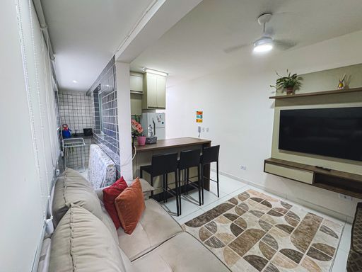 PRAIA GRANDE - CANTO DO FORTE Excelente oportunidade para morar ou investir em Praia Grande, no bairro Canto do Forte, uma das regiões mais valorizadas da cidade. Este apartamento semi mobiliado oferece conforto, modernidade e ótima infraestrutura de lazer. Com 50 m² de área útil, o imóvel conta com sala para dois ambientes, bem distribuída e integrada à sacada gourmet, ideal para momentos de lazer e confraternização. A cozinha americana traz praticidade ao dia a dia, além de contar com área de serviço funcional. O apartamento possui 1 dormitório aconchegante e banheiro social com box em vidro Blindex, garantindo acabamento moderno. Para maior comodidade, dispõe de 1 vaga de garagem. O condomínio oferece excelente área de lazer, com piscina, academia, salão de jogos e salão de festas, proporcionando qualidade de vida e bem-estar. Localizado próximo a comércios, serviços e com fácil acesso à praia, este imóvel é uma ótima opção para quem busca conforto e valorização imobiliária no Canto do Forte.