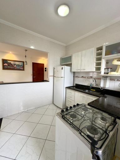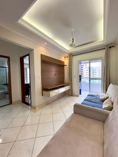 O imóvel possui 51 m² de área útil, muito bem distribuídos, contando com 1 dormitório com sacada e uma charmosa vista parcial para o mar, além de sala com sacada e vista para o mar, proporcionando ambientes arejados, iluminados e agradáveis. A cozinha ampla com armários garante praticidade no dia a dia, complementada por área de serviço funcional. O banheiro social com box blindex oferece conforto e bom acabamento.