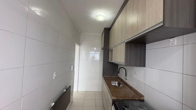 A cozinha conta com armários planejados, trazendo praticidade ao dia a dia, além de área de serviço funcional. O imóvel dispõe ainda de banheiro social com box blindex e 1 vaga de garagem.
