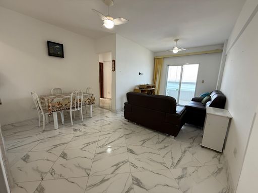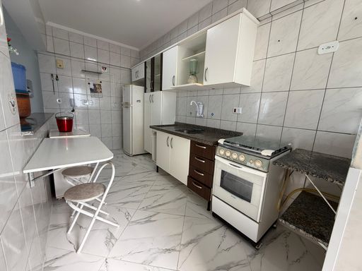 A cozinha americana integra os ambientes e oferece mais funcionalidade ao dia a dia. O apartamento dispõe ainda de área de serviço, banheiro social com box e 1 vaga de garagem, atendendo bem às necessidades de moradores e veranistas.