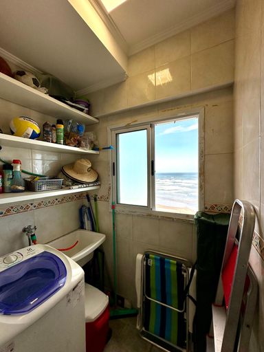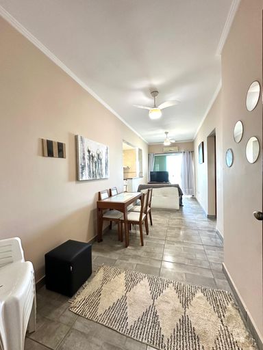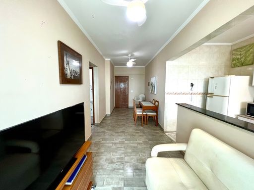 O apartamento conta com 2 dormitórios, sendo 1 suíte, além de uma sala ampla integrada a uma sacada gourmet envidraçada, ideal para reunir amigos e familiares enquanto aprecia a vista total do oceano. A cozinha americana com armários planejados traz funcionalidade e modernidade ao ambiente, complementada por uma área de serviço bem ventilada e um banheiro social com box blindex.