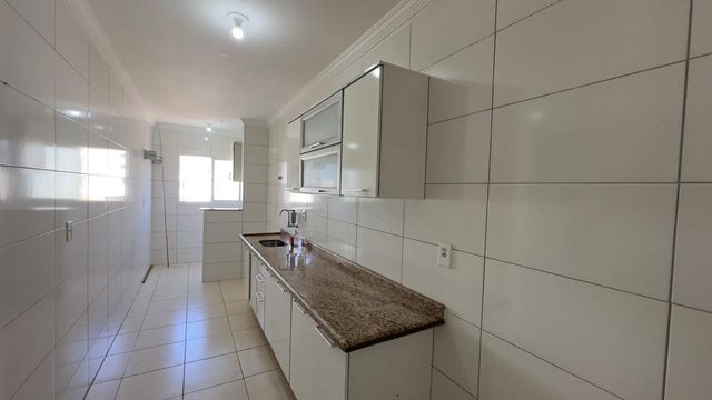 A cozinha americana conta com planejados, trazendo praticidade e melhor aproveitamento dos espaços, além de área de serviço independente. O apartamento dispõe ainda de 1 banheiro social com box Blindex e 1 vaga de garagem.