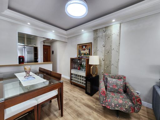 Com 85 m² de área útil, o imóvel é composto por dois dormitórios, sendo um deles uma suíte com sacada, proporcionando privacidade e comodidade. A sala ampla integra-se harmoniosamente à sacada gourmet, ideal para momentos de lazer e confraternização. A cozinha americana conta com armários planejados, otimizando o espaço e facilitando o dia a dia. Além disso, o apartamento dispõe de área de serviço funcional e um banheiro social equipado com box blindex. Duas vagas de garagem estão incluídas, garantindo segurança e praticidade para seus veículos.
