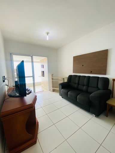 A sala ampla com sacada envidraçada oferece uma vista deslumbrante do mar, permitindo que os moradores aproveitem o ambiente marinho em qualquer momento do dia. A cozinha americana prática e funcional, proporcionando espaço para preparação de refeições e armazenamento.