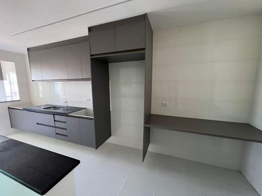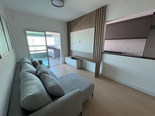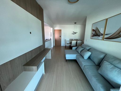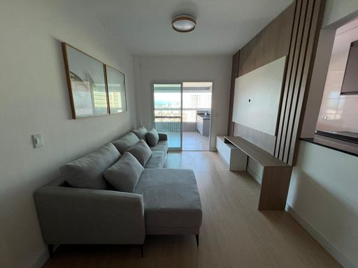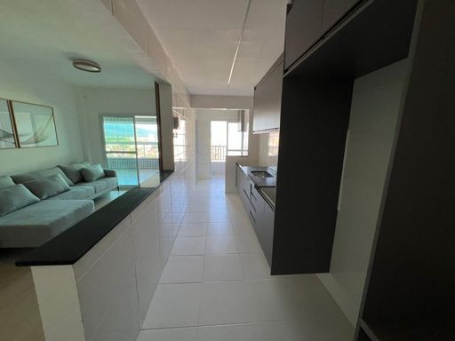 O apartamento conta com 3 dormitórios, sendo 1 suíte com sacada privativa, proporcionando mais privacidade e conforto. A sala é ampla, com dois ambientes integrados e acesso à sacada, onde você pode relaxar apreciando a brisa e a vista para o mar. A cozinha é do tipo americana, moderna e prática, conectada à área de serviço.