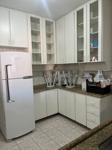 A cozinha americana com armários traz praticidade e integração com os ambientes, tornando o espaço mais funcional. O apartamento também dispõe de área de serviço, banheiro social e 1 vaga de garagem.