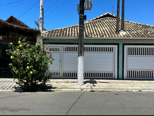 Casa germinada, localizado na Praia Grande, no bairro da Vila Caiçara, 139 m² de área total, 2 dormitórios sendo 1 suíte, lavabo no quintal dos fundos com churrasqueira, janelas de alumínio, grades em todas, portão eletrônico, banheiros com box. ótima localização 1 quadra da praia.