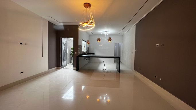 Casa geminada localizada na Praia Grande, no bairro Vilamar, 134,62m², 3 dormitórios sendo 3 suítes, sala ampla, cozinha com balcão americano, lavabo, área de serviço, garagem para 2 automóveis, área gourmet com churrasqueirae spa ( 5 pessoas).