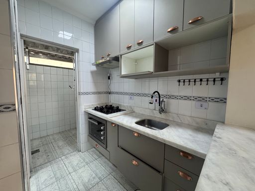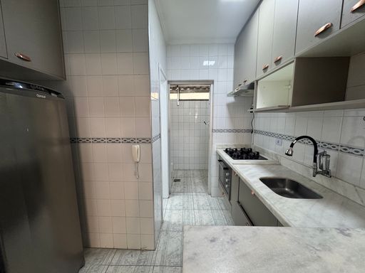 Conta com 2 dormitórios, proporcionando conforto para toda a família. A sala é aconchegante e integrada à cozinha americana, que possui armários, garantindo praticidade e melhor aproveitamento do espaço. Dispõe ainda de área de serviço.