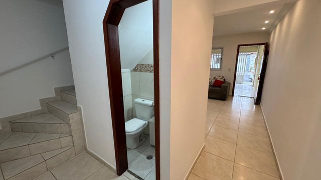 Além disso, o imóvel dispõe de um banheiro social com box em vidro blindex, um lavabo no piso inferior, área de serviço externa e um ótimo quintal nos fundos com espaço gourmet – ideal para confraternizações e momentos de lazer em família.