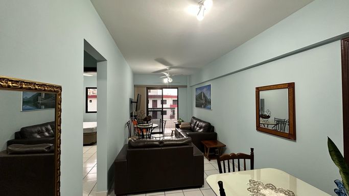 PRAIA GRANDE - GUILHERMINA. Olá! Tenho uma excelente oportunidade de apartamento localizado na Guilhermina, em Praia Grande. Este imóvel mobiliado está a apenas 250 metros da praia, oferecendo uma localização privilegiada para quem deseja aproveitar o melhor do litoral. O apartamento possui uma área útil de 51 m², proporcionando um espaço confortável e bem distribuído. São um dormitório ideal para uma pessoa ou casal, além de uma sala com dois ambientes e uma sacada com vista para o mar, perfeita para relaxar e apreciar a paisagem. A cozinha é prática e funcional, com área de serviço integrada, facilitando o seu dia a dia. O banheiro social conta com um box de vidro, garantindo segurança e comodidade. O prédio oferece uma infraestrutura completa, incluindo dois elevadores para maior conveniência, portaria 24 horas para sua segurança e um salão de jogos para momentos de lazer. Para sua comodidade, há uma vaga de garagem coletiva disponível. Se você busca um imóvel bem localizado, mobiliado e com uma vista maravilhosa para o mar, essa é uma oportunidade que vale a pena conferir. Estou à disposição para fornecer mais informações ou agendar uma visita!