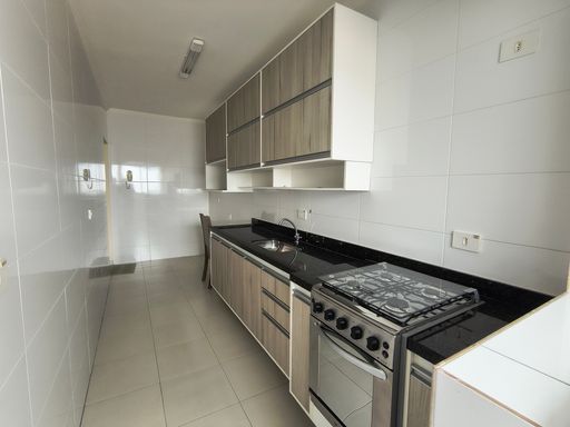 O imóvel conta com 2 dormitórios, sendo 1 suíte, proporcionando mais privacidade e comodidade. A sala é ampla e integrada a uma sacada gourmet envidraçada, perfeita para momentos de lazer, refeições ao ar livre ou simplesmente para relaxar em um ambiente agradável. A cozinha possui armários planejados, mantendo o espaço organizado e funcional, além de contar com uma área de serviço independente. O apartamento dispõe também de um banheiro social com box Blindex.