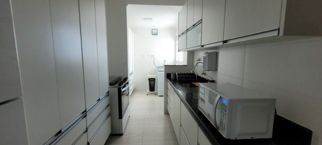 A cozinha é funcional e moderna, proporcionando integração com a sala e facilitando a interação durante o preparo das refeições.