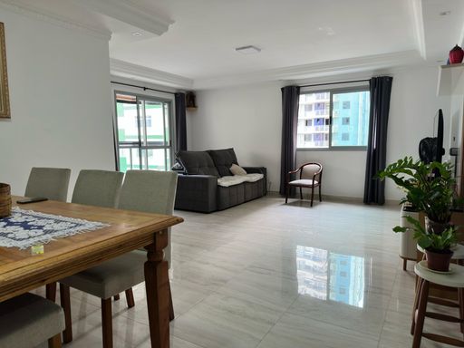 Este amplo apartamento conta com 126 m² de área útil, muito bem distribuídos em 3 dormitórios, sendo 1 suíte, oferecendo conforto e privacidade para toda a família. A sala é espaçosa, com 2 ambientes integrados, e possui acesso a uma belíssima sacada gourmet envidraçada com vista para o mar, ideal para momentos de lazer e confraternização.